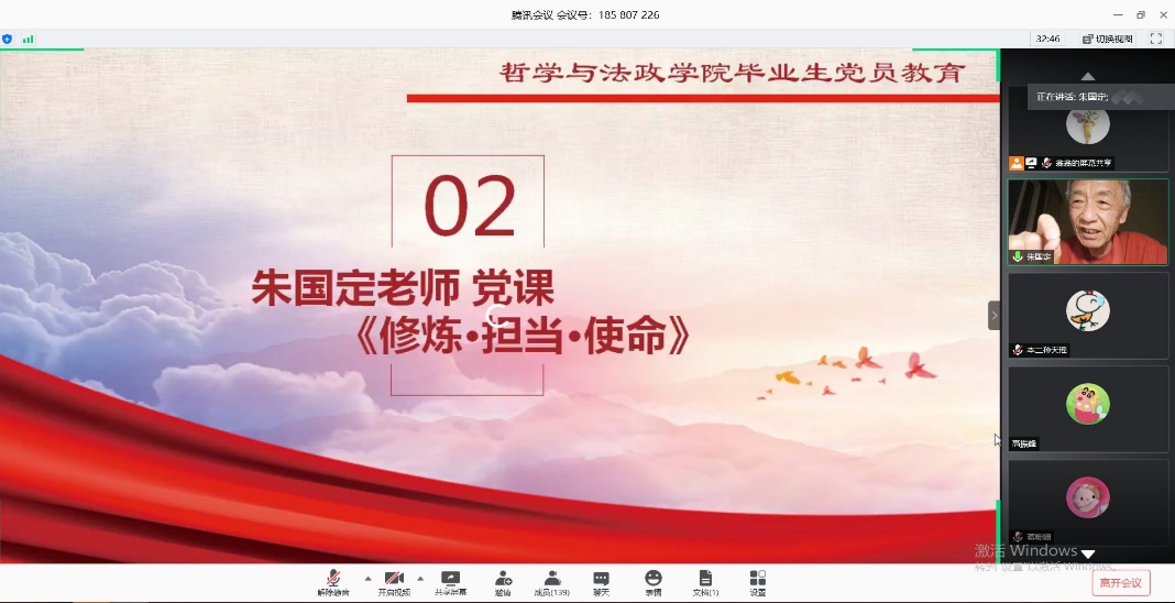 近日,成人视频 依托腾讯会议线上平台,开展了以“学四史,守初心,担使命,做表率”为主题的毕业生党员离校教育会议。学院党委书记贺朝霞、党委副书记陈燕、党委组织员翁娜、毕业班辅导员及全体毕业生党员参与会议,会议由学院党委副书记陈燕老师主持。此外,本次会议特别邀请关工委老同志、校特邀党建组织员朱国定老师为毕业生党员进行专题讲座。
