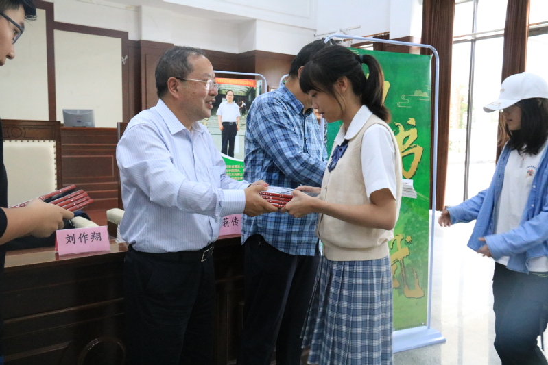 最后,学院举行了赠书仪式。蒋传光教授和刘作翔教授以班级为单位向同学们赠送了《法学第一课》一书,希望同学们能够从书中汲取丰营养,提升专业素养,打开法学研究的大门。