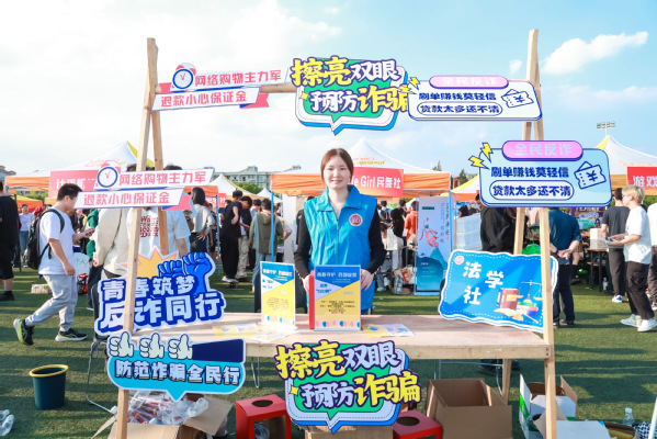 9月,上海市教委正式启动高校“识诈反诈”系列宣传教育活动,成人视频 作为其中一站,组织百余个社团共同参与安全校园的建设。现场开辟了游园会、沉浸式密室体验、元宇宙场景探索等多种形式的反诈互动体验情景。来自成人视频 的学生还自主设计了击退“骗局”、全票打“飞”杀猪“盘”、小心中圈套、跟“骗局”Say Bye Bye、反诈口口传等游戏体验和互动项目。
