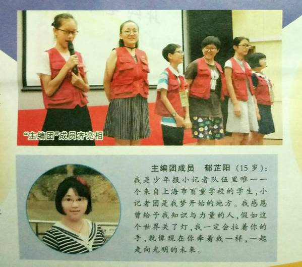 社会工作专业,中小学就读于上海市盲童学校,被评为长宁区优秀共青团员,是海教育报刊总社《少年日报》中唯一一名来自特殊学校的小记者、小主编,她热爱主持、朗诵、编导,曾获得过国家级、市级、区级和校级奖项60余项。