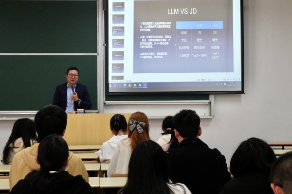 在互动环节,万老师和同学们进行了有关未来择业、出国留学方面的讨论。万老师通过介绍自己的工作经验及工作内容,对同学们的问题进行了解答,使同学们了解到国际法律业务与金融经济是息息相关的,从而对未来工作有更加清晰的认知。
