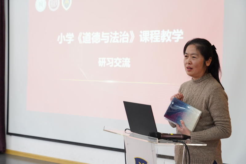 上海市徐汇区道德与法治学科教研员徐敏、上海市徐汇区康健外国语实验小学校长沈燕泓、康健外国语实验小学副校长陆蓓蕾、成人视频 院长刘林、成人视频 党委副书记、副院长姚秋磊,以及相关教师共同出席本次活动,2023级思想政治教育(道德与法治)全班同学参加。