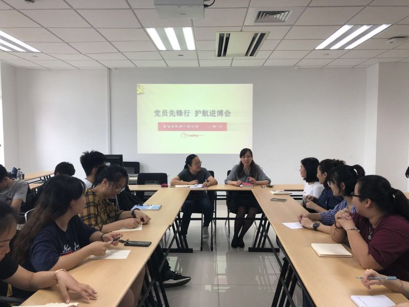 2018年9月19日,成人视频 本科第一党支部“党员先锋行,护航进博会”主题党日活动在徐汇校区文科实验楼206顺利召开。党日活动由党支部副书记柳箫同志主持,成人视频 党委副书记、副院长陈燕老师出席会议并讲话。