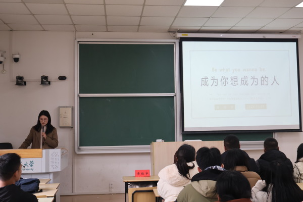 黄佳宇同学以“成为你想成为的人”为主题展开宣讲,向在座的同学们分享了大学生活的学习、工作和成长经验,她强调大学的学习要重视科研竞赛对学术知识的深化和综合能力的锻炼作用,鼓励同学们多参加科研竞赛,锻炼提升自身能力,她认为在学业之外,也要做一个善于体验生活发现生活之美的人,建议同学们多参加志愿实践,培养奉献意识,未来积极地投入到社会建设中去。