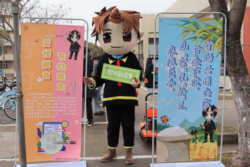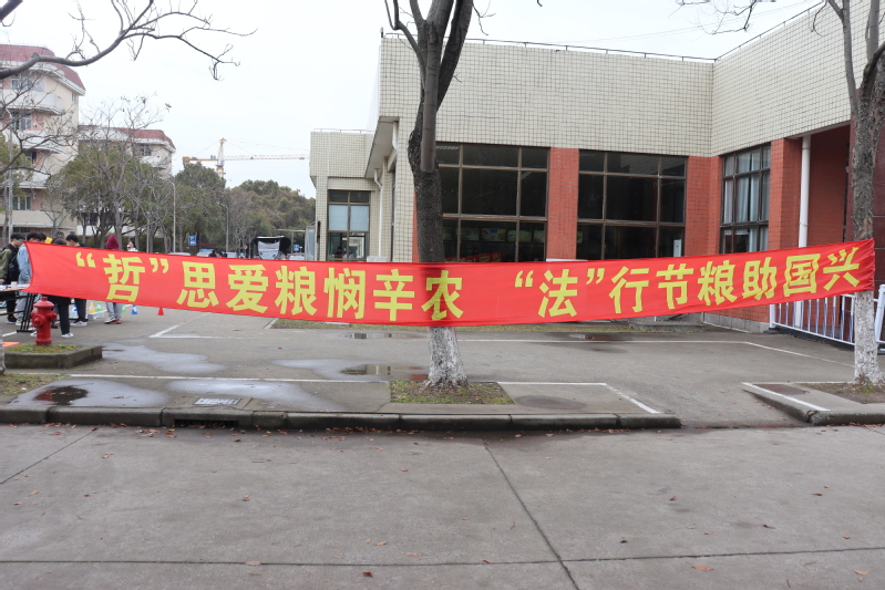 “一粥一饭,当思来之不易;半丝半缕,恒念物力维艰”。米粒虽小,尤见礼义廉耻;节俭事微,可助兴国安邦。活动伊始,印有活动主题的横幅便被拉起,由工作人员扮演的“灋灋”带着两个大型易拉宝吸引了不少过路同学注目。