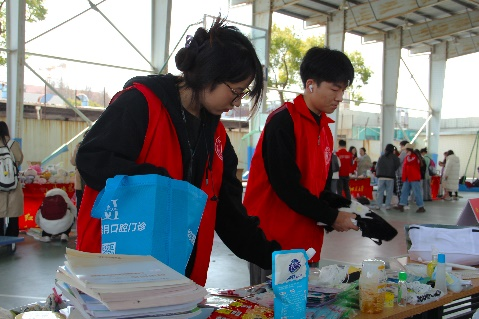 “哲法爱心摊位”前,志愿者们早早就忙碌起来,搭建摊位,整理物资,热情叫卖者。工作人员热心介绍着每一样爱心物品的用途和本次爱心义卖活动的意义所在。