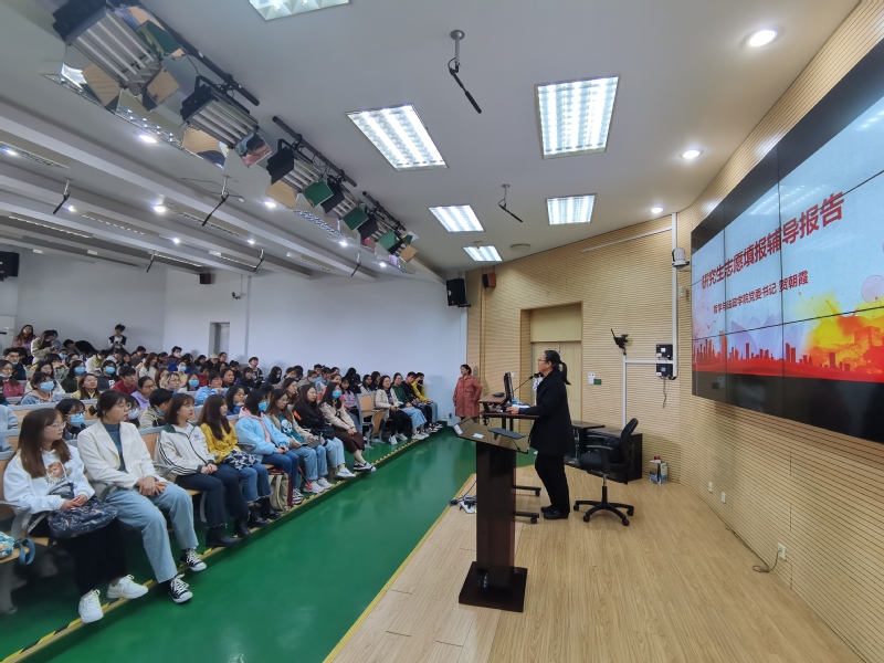 2021年4月14日13:00,成人视频 研究生志愿填报辅导讲座于奉贤校区第四教学楼D座100教室举行,本次讲座特邀成人视频 党委书记贺朝霞教授主讲,成人视频 全体大二、大三有考研意向的200多名学生参加。