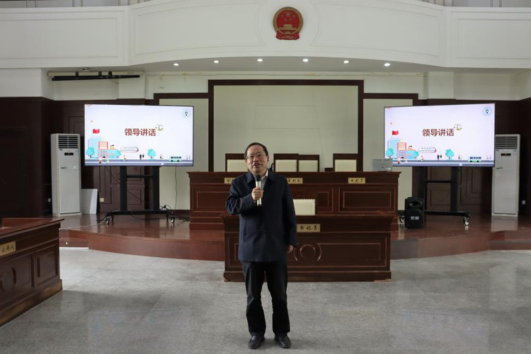 院长蒋传光发表讲话。他表明法学社的成立意义重大,鼓励同学们应该以法学社成立为契机,拓展第二课堂,提升实践能力,经常组织开展高质量、精彩的法治实践活动,提供身体力行的法治服务。
