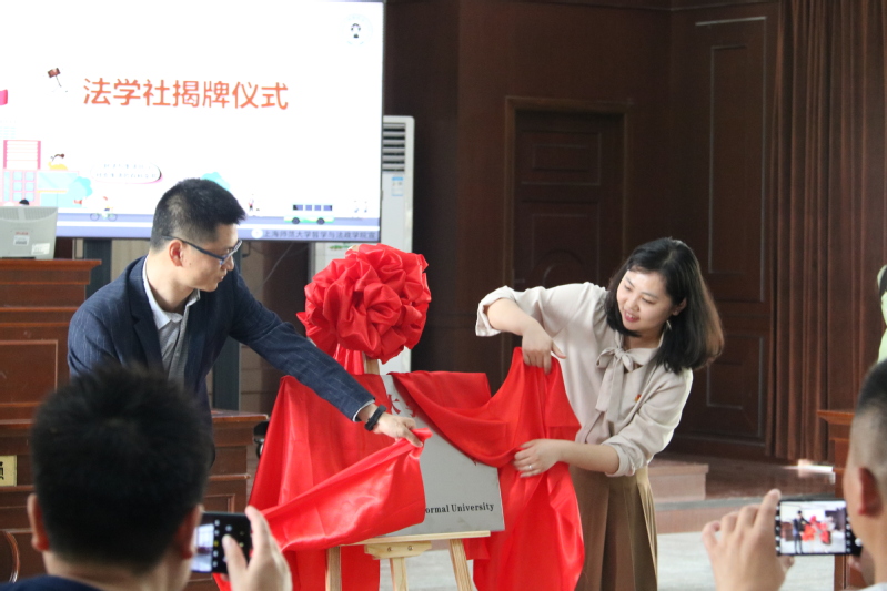 法学社围绕“普及法律知识,宣传法治精神”,为社会主义法治文明建设添砖加瓦。成人视频 党委副书记姚秋磊与校团委副书记金黎琼为法学社揭牌,与在场的师生们一齐见证法学社成立的时刻。
