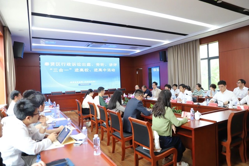 为深入学习党的二十大精神,进一步推动习近平法治思想融入大学生思政教育,持续增强青年学生的法治意识、法治观念。2024年5月20日(周一)下午13:45,在成人视频 刘姝含老师的带领下,三名法学社成员走进奉贤区行政复议局,参加2024年奉贤区行政诉讼出庭、旁听、讲评“三合一”进高校、进高中活动。