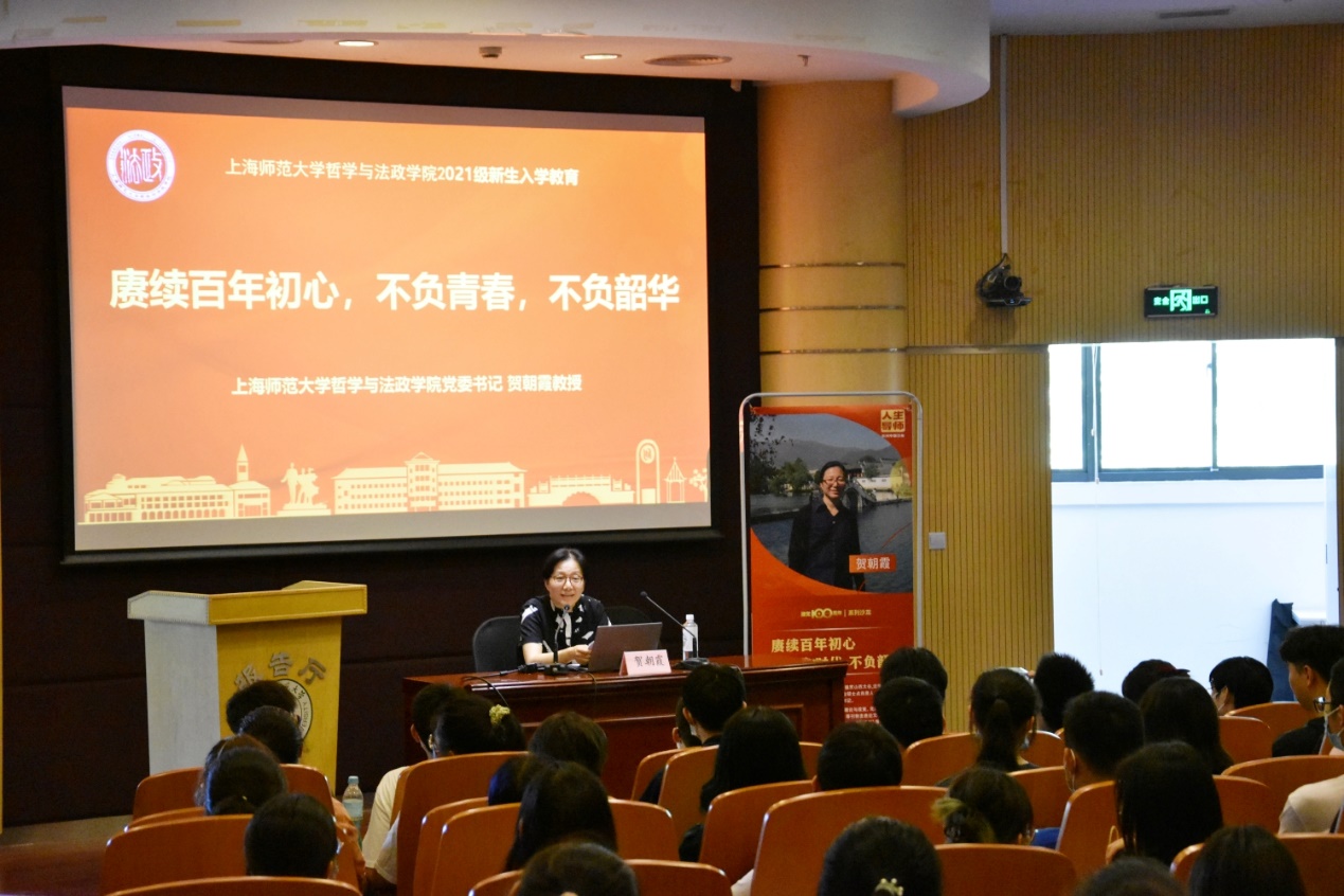 入学启蒙课,引领新生梦想起航。下午,活动第二场由贺朝霞教授带来“赓续百年初心 不负时代 不负韶华”的主题讲话。大学是人生中十分重要的转折点,而在大学中如何生活,以何种姿态生活,正是新生们面临的难题。她通过生动的案例娓娓展开,不仅展现出大学生活独特的一面,也提炼出大学成长于无声处的宝贵,“适应”、“理性”与“选择”,是贺朝霞教授带给新生们的三个关键词,她引导新生们要学会适应生活,更加宽容与自立。在入党教育方面,她希望同学们能遵从⾃⼰的内⼼,将党作为理想与信念,慎重思考后再做出选择。