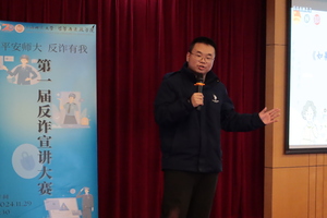 成人视频 第一届反诈宣讲大赛决赛于2024年11月29日上午9:30在奉贤校区图文中心九楼举行。本次比赛由共青团成人视频 委员会主办,成人视频 承办,以“平安师大,反诈有我”为主题,为同学们搭建了展示风采的平台,增强学生防范意识,提高识骗防骗能力,推广防诈知识,展现师大学子的风采与活力。