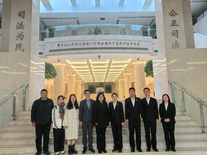 党委书记高亭、学院党委副书记、副院长姚秋磊、学院团委书记、就业专项辅导员庄越、今年入选第四批“全国党建工作样板支部”培育创建单位的法学社党支部书记孙晨龙及实习代表2022级法律(法学)专业研究生杨乙珺参加走访,上海市第一中级人民法院政治部副主任闫寒、机关团委书记陆俊伟、政治部干部三科科长唐晓东、政治部干部三科一级主任科员杨庆、孙凯茜参与本次活动。