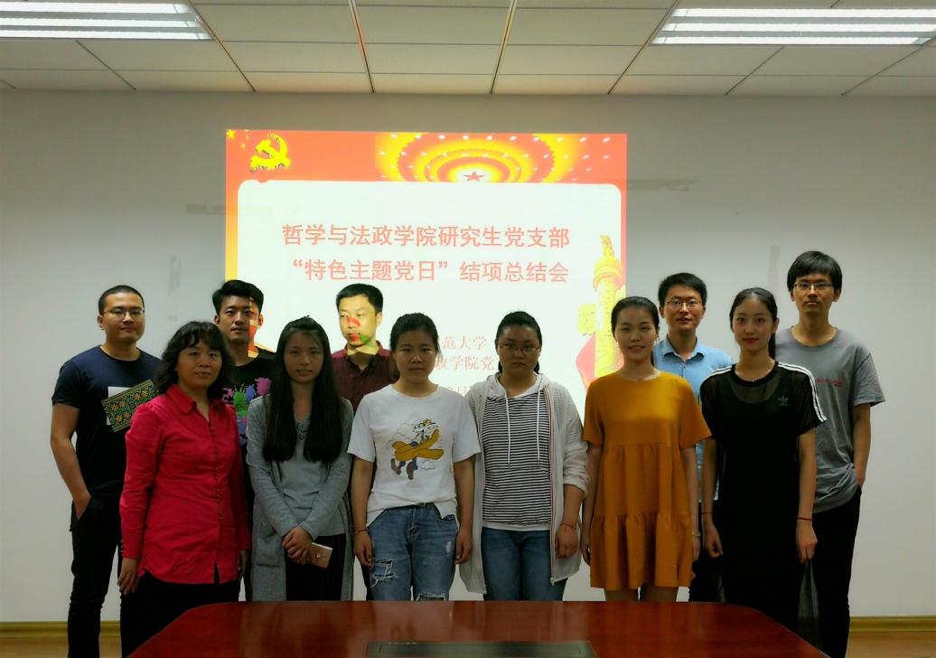 为深入学习、领会和宣传贯彻党的十九大精神,将习近平新时代中国特色社会主义思想内化于心、外化于行,哲法学院研究生党支部自去年12月下旬以来,以“践行十九大精神,开展特色主题党日”为主题,陆续开展多项别开生面的党日活动。6月20日下午,学院在文科楼908举行研究生党支部“特色主题党日”结项总结会,学院党委组织员陈敏、研究生辅导员、研究生党支部书记参加会议。辅导员王秀萍老师主持会议。