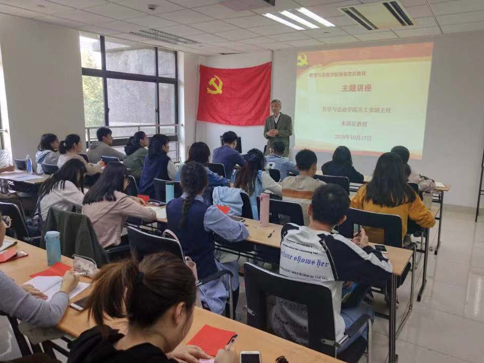 2018年10月17日下午,成人视频 于徐汇文科实验楼206举行了预备党员教育和入党宣誓大会,党员教育由成人视频 关工委副主任朱国定老师主讲,来自徐汇校区和奉贤校区的研究生和本科生预备党员参加了本次会议,大会由辅导员王秀萍老师主持。