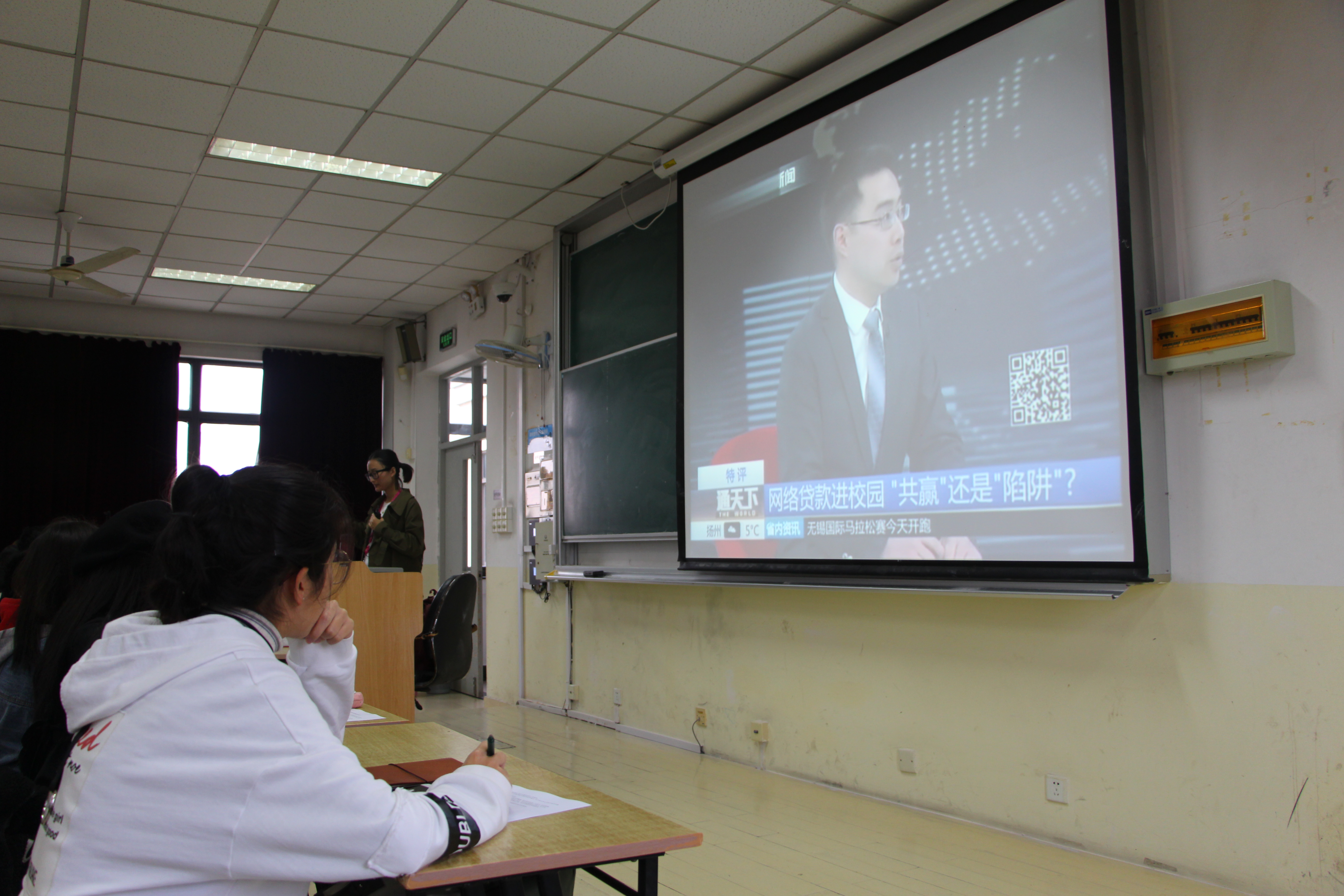 樊老师先以一段视频引入,通过视频中对校园贷恶性案例的分析,得出了:学生消费贷款应理性而不要“任性”、网络贷款进校园多是“陷阱”的结论,发人深省。随后以ppt的形式向我们介绍了校园信贷的前世今生。总结而言,第一,校园贷的借款利率普遍很高,用通俗的语言来讲就是“不划算”;第二,使用校园贷等相似服务会激发人的消费欲望,从而迫使你不断购入自己本负担不起的物品;第三,令人不注意的隐藏法律条文将会使你不得脱身。学生们不能因其提供的“低门槛”而轻易掉入陷阱。