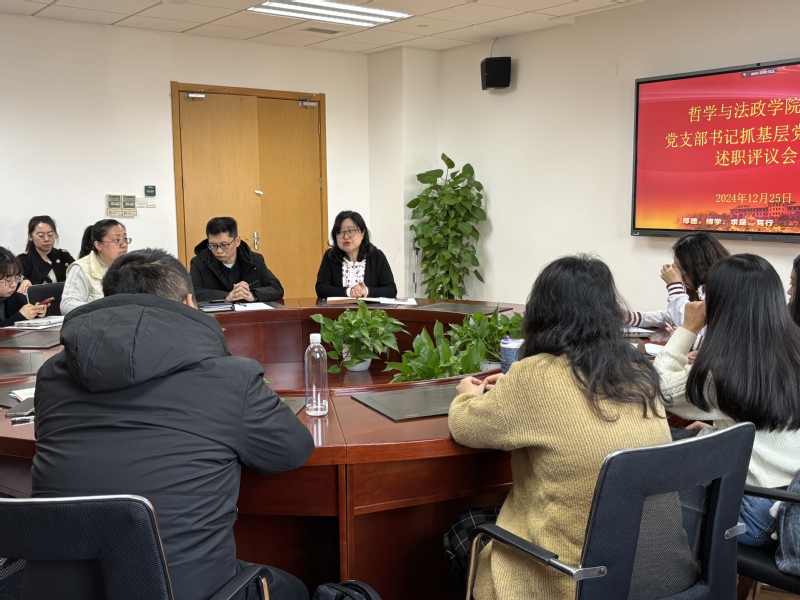 为深入落实全面从严治党要求,学习贯彻习近平新时代中国特色社会主义思想和党的二十大、二十届三中全会精神,推动基层党建工作高质量发展,哲学与法政学院于12月11日下午、12月25日中午在文科实验楼808召开2024年度教工与学生党支部书记述职评议交流会。院党委书记高亭、院党委副书记、副院长姚秋磊、院党委组织员翁娜及全院师生党支部书记出席会议。
