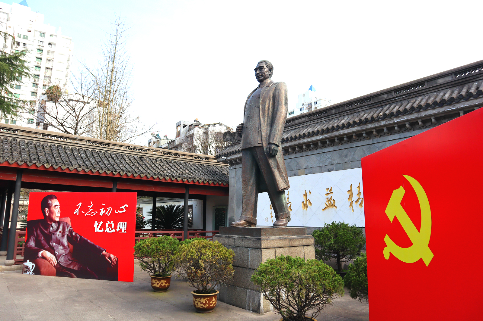 离开鲁迅故居后,支部一行来到不远处的周恩来总理祖居。一走进周总理祖居所在的大院,总理伟岸挺拔的雕像赫然映入眼帘,其身后的墙壁上刻着总理的手书“努力学习、精益求精”八个大字。在支部书记王艺腾的讲解下,党员们深刻缅怀了周总理为党、为国家、为人民鞠躬尽瘁的崇高风范和卓著功勋,在心灵深处产生了强烈的敬意。为号召大家以周总理为榜样,永远对党忠诚、鞠躬尽瘁、努力工作,党员同志在总理雕像前重温了入党誓词。“我志愿加入中国共产党,拥护党的纲领,遵守党的章程……”,在铿锵有力的誓言声中,大家进一步坚定了不忘初心,牢记使命的政治方向和政治担当。受到宣誓场景的感染和带动,在现场参观的群众还与支部党员一道唱起了《我和我的祖国》,场面一度十分热烈。