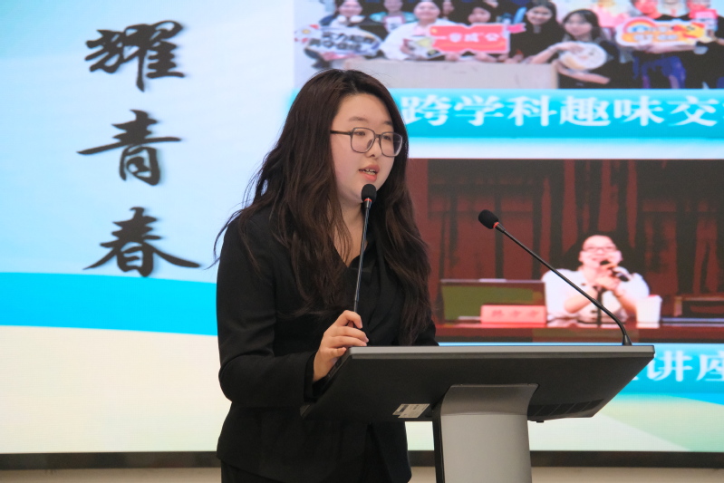 成人视频 学生会主席团成员崔可欣介绍本届“学术嘉年华”的活动安排,展现学院在学术创新与育人实践中的积极探索。