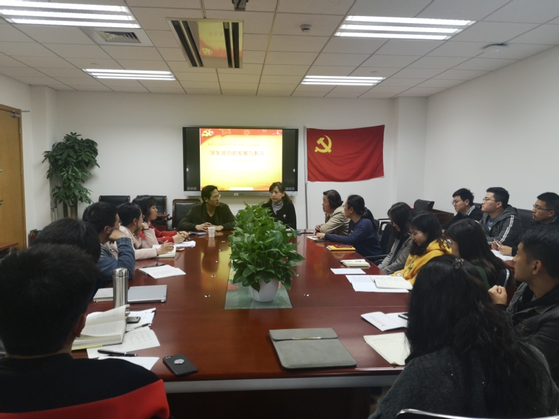 为进一步提升基层党支部书记队伍能力素质,成人视频 于2019年4月10日下午14:30在文科大楼908召开了2019年学生党支部书记培训班。本次开班仪式由学院党委副书记、副院长陈燕主持,邀请上海工程技术大学电子电气工程学院党委组织员周科亮作主题讲座,学院党委委员、组织员、师生党支部书记和辅导员参与了此次培训。