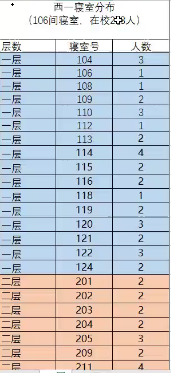 西一宿舍楼防疫工作提示及宿舍分布情况表