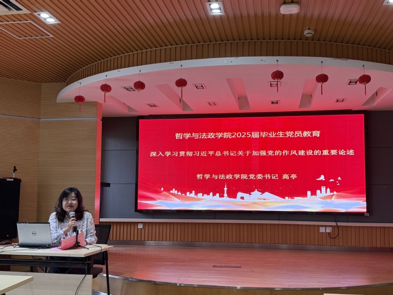 高亭老师为毕业生党员带来了专题党课,教育引导毕业生党员深入学习贯彻习近平总书记关于加强党的作风建设的重要论述,讲了落实中央八项规定精神的成效经验,希望大家不忘初心、牢记使命,强化作风建设,扣好迈入社会的“第一粒扣子”,更好地肩负起时代重任,为实现中华民族伟大复兴贡献青春力量。