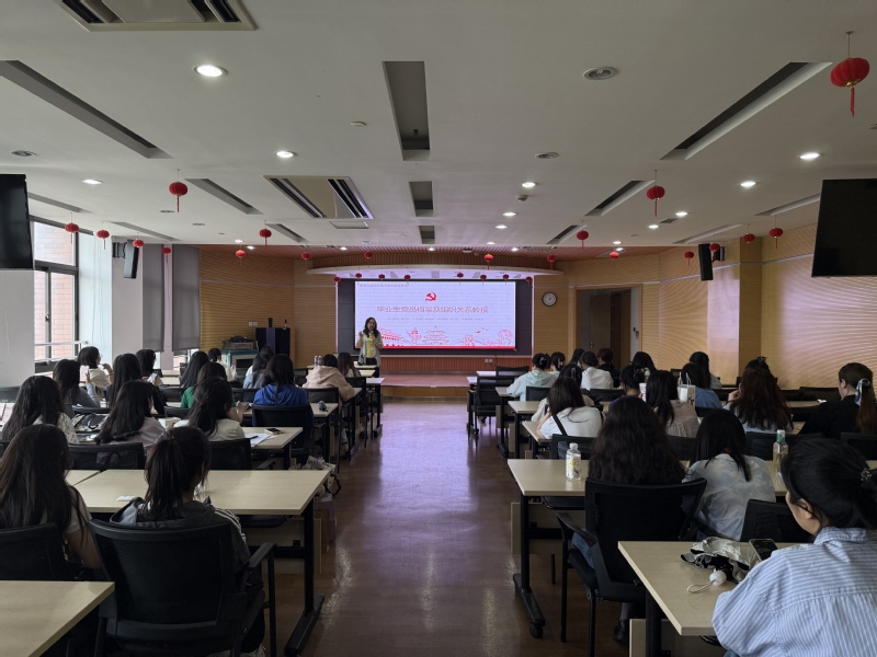 翁娜老师为全体毕业生党员带来了党员档案及组织关系转接培训。她强调党员应该增强身份意识和纪律意识,结合条例内容和毕业生去向分类,对到本市、外省、考研、工作、出国等不同情况的党员给予了具体的指导。结合往年案例,为同学们提供了满满的干货。