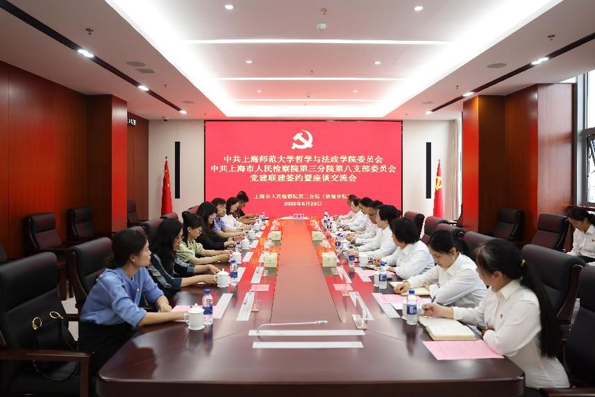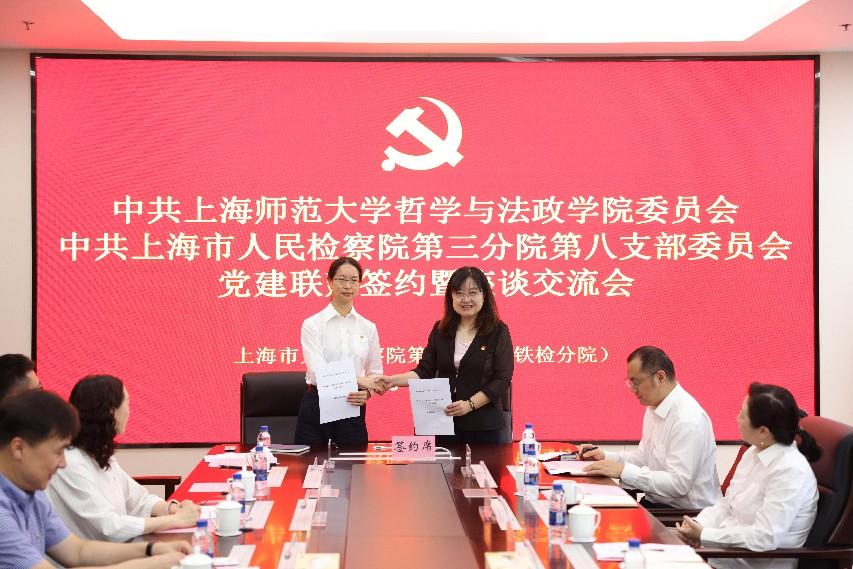 为深入贯彻中央八项规定精神学习教育走深走实,深化党支部品牌建设,促进党建与业务融合发展,6月23日,成人视频 前往上海市人民检察院第三分院(铁检分院)与第八党支部举行党建联建签约仪式,围绕深入贯彻中央八项规定精神和院检合作等方面开展座谈交流和学习参观,以党建为引领,推动法学教育与检察实务双提升、双促进。