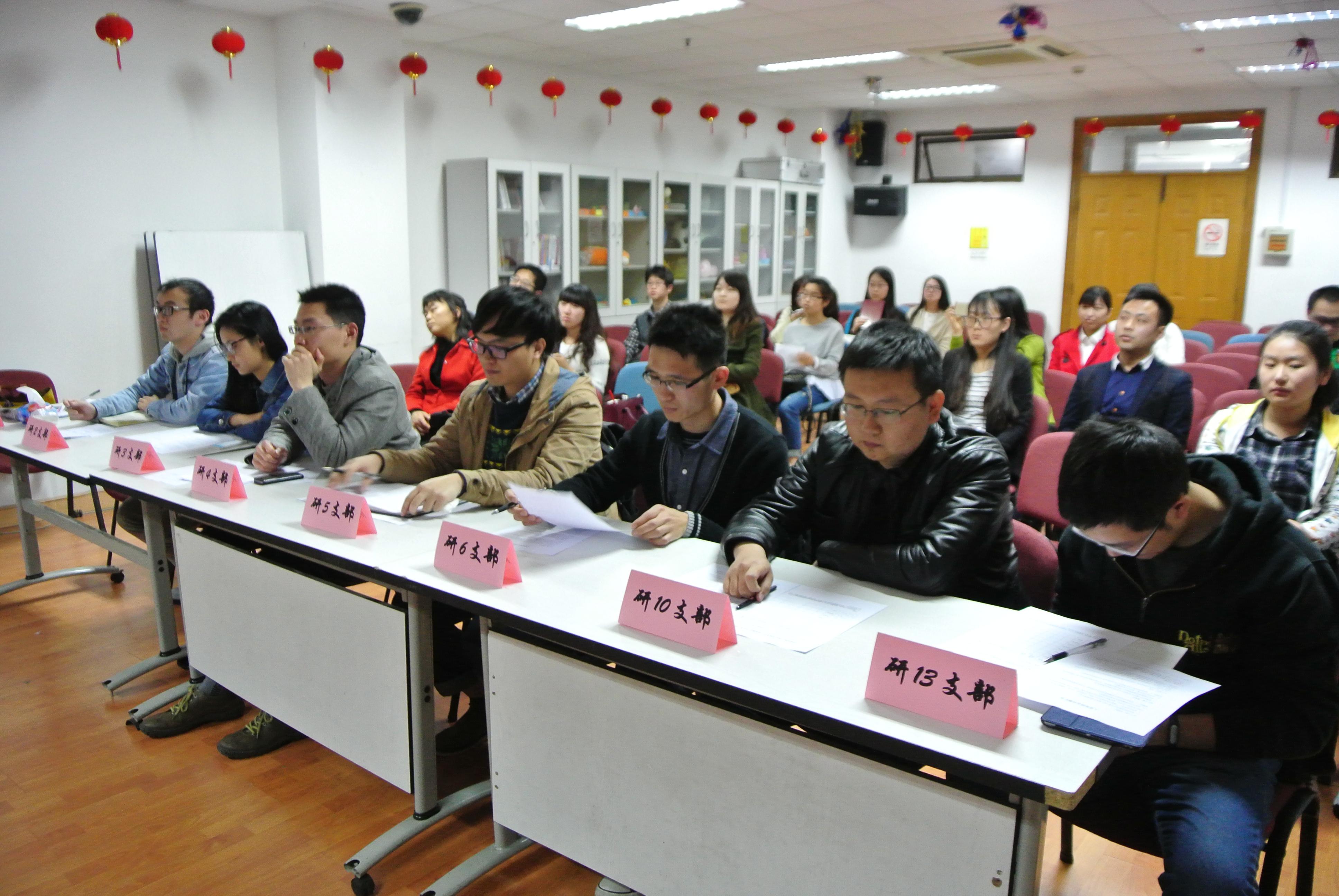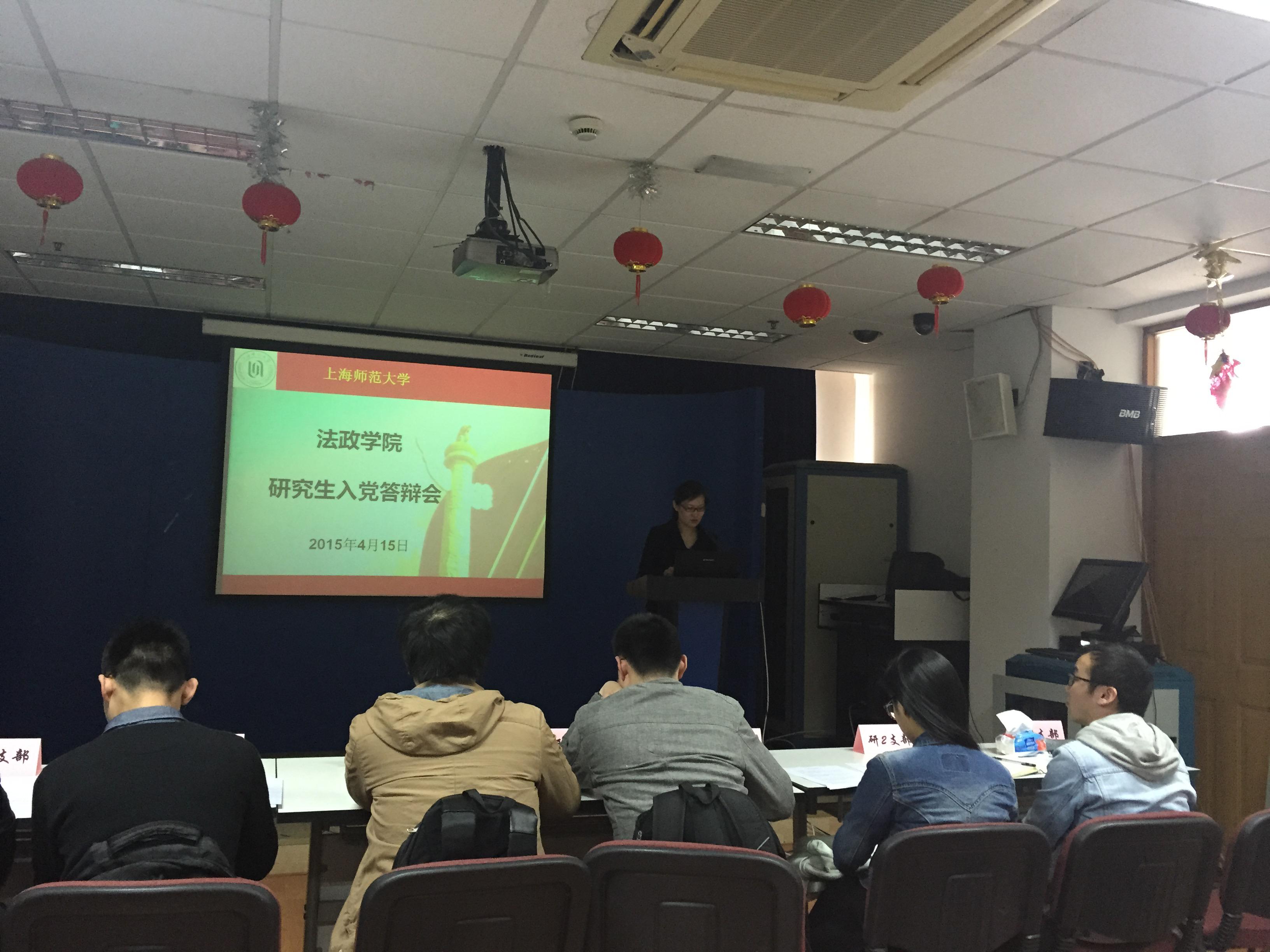 在文苑楼1002室举办研究生入党答辩会。学院党委组织员陈敏老师,研究生辅导员王秀萍老师出席了本次答辩会。来自研究生第一、二、三、四、五、六、十、十三党支部的8名入党积极分子以及各自的入党联系人、介绍人参加了会议。上述8个支部的支部书记担任本次答辩会的评委。会议由第一党支部书记田思倩主持。