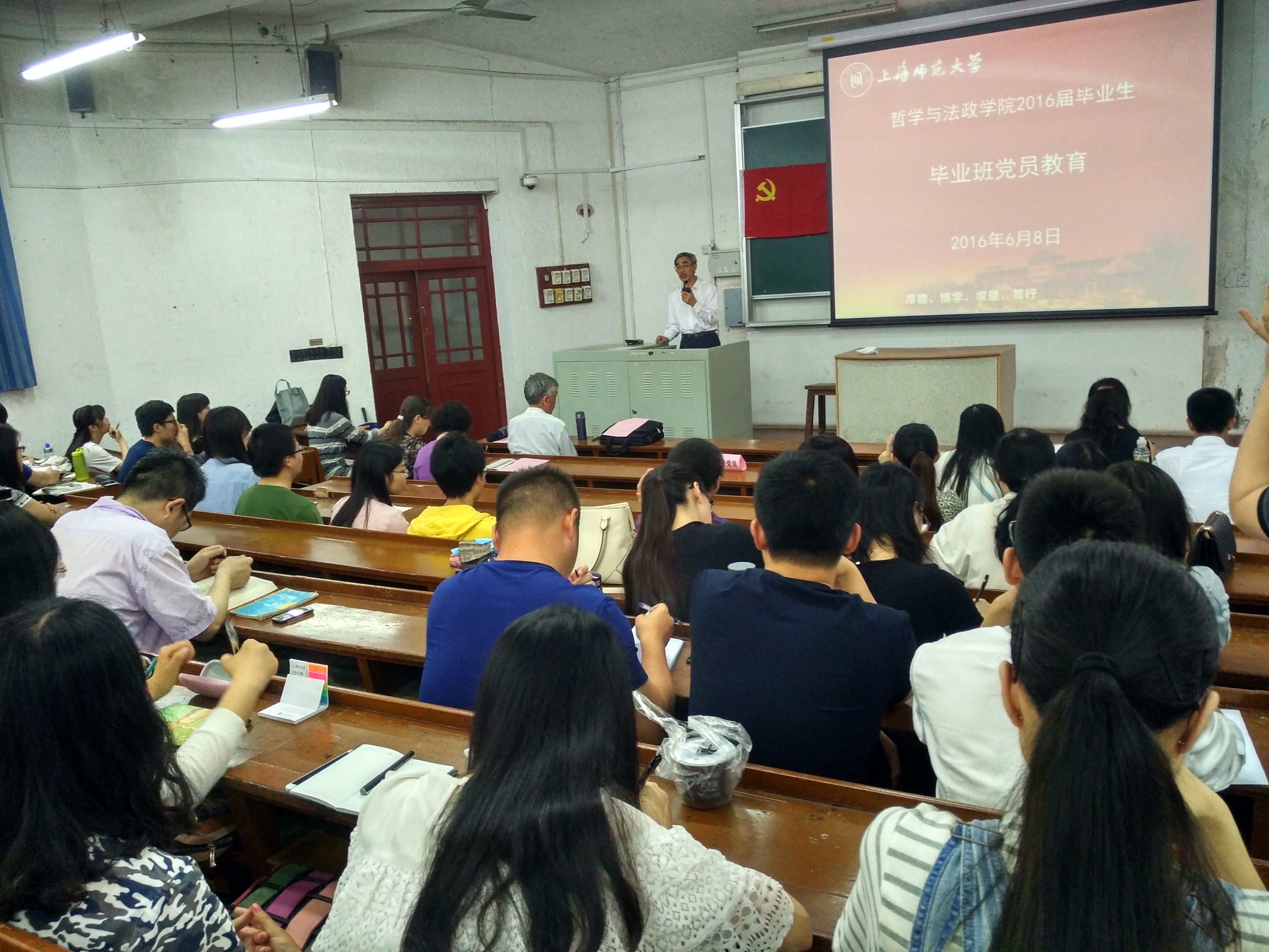在徐汇西部校区西一教室召开2016届毕业生党员教育大会。院党委书记商红日、党委副书记陈燕、党委组织员陈敏以及研究生、本科生辅导员等领导和老师出席了大会。本次大会特邀请学院关工委朱国定老师为毕业生党员举办专题讲座。全院一百多名本科生、研究生毕业生党员参加了本次大会。会议由本科生辅导员翁娜老师主持。
