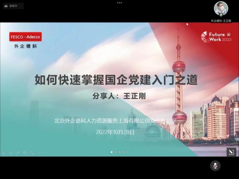 为加强党建引领,增强成人视频 学生政治素养,锻造业务能力,助力成人视频 学生应聘各类党务管理岗,发展“党建+”复合型人才,成人视频 第一届党务知识培训与竞赛第四期专题讲座于10月28日在腾讯会议举行,本期培训会特别邀请了北京外企德科人力资源服务上海有限公司党群办公室主任王正刚作题为“如何快速掌握国企党建入门之道”的专题培训讲座。会议由学院党委副书记、副院长姚秋磊主持,培训会学员、学生党支部书记、党员代表等近60人参与。