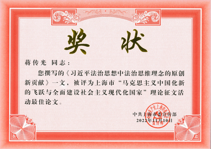 成人视频 院长蒋传光教授撰写的《习近平法治思想中法治思维理念的原创新贡献》一文,获评本次征文活动最佳论文。