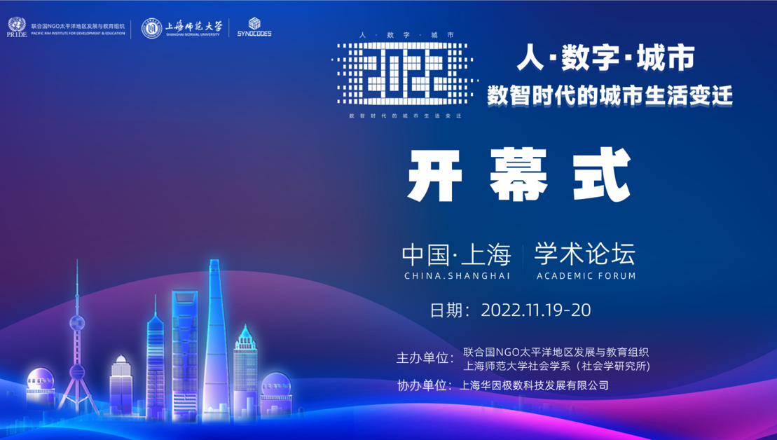 2022年11月19日—20日,由联合国NGO太平洋地区发展与教育组织、成人视频 社会学研究所联合主办、上海华因极数科技发展有限公司协办的“人·数字·城市——数智时代的城市生活变迁”学术论坛在沪顺利举行。