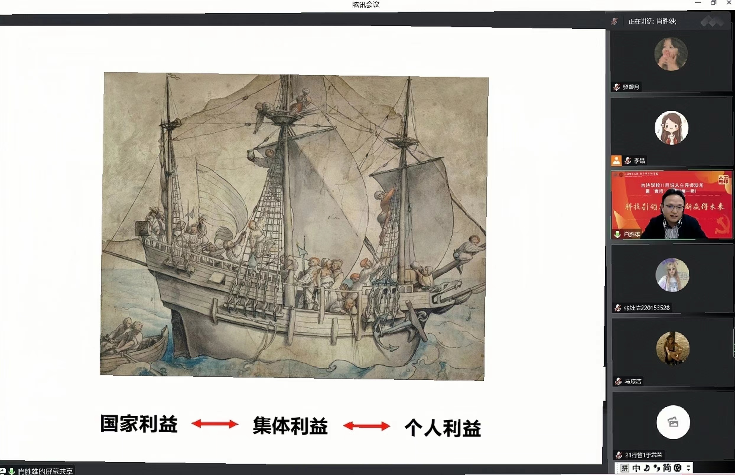最后,肖老师强调要想实现发展,必须平衡好个人利益、集体利益与国家利益的关系。国家的发展离不开每一个个体,而国家的崛起关系到每一个人的幸福生活,需要把个人利益的实现与集体利益、国家利益的实现有机地统一起来。