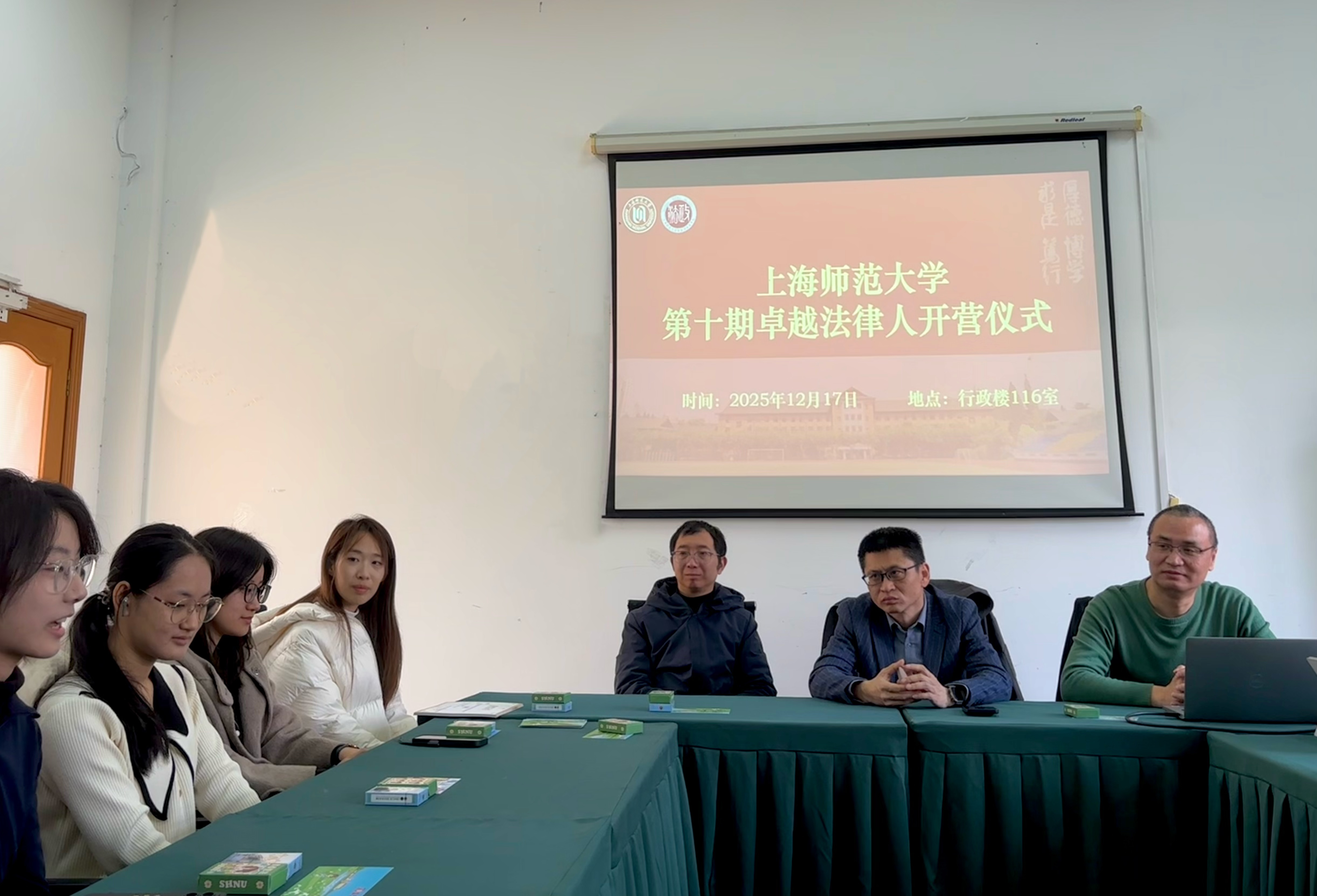 2025年12月17日,成人视频 第十期卓越法律人训练营开营仪式在奉贤校区行政楼116室正式开始。成人视频 党委副书记、副院长姚秋磊老师,训练营教练法律系何国锋副教授、法学社指导教师成人视频 刘振宇副教授出席本次活动。