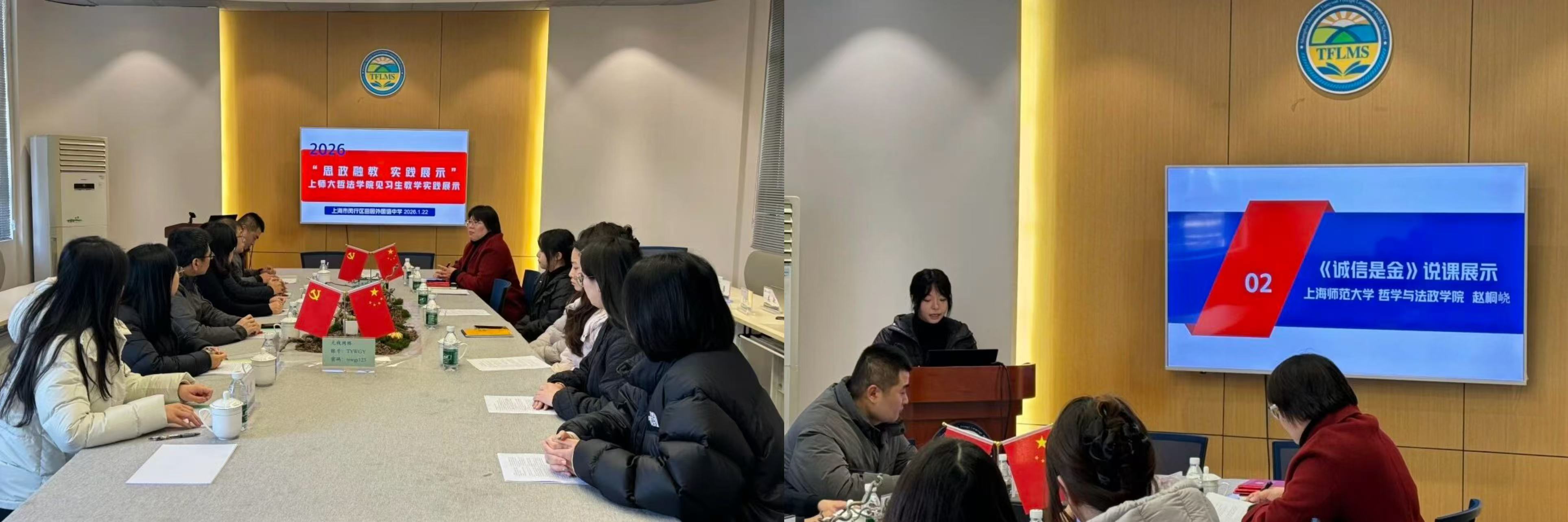 为进一步深化院校协同育人机制,切实提升师范生人才培育质效,1月22日2023级思想政治教育(道德与法治)师范生见习教学展示活动在闵行区田园外国语中学顺利举行。田外初中党支部副书记(主持工作)兼副校长史红秀、校长吴敏、副校长张勇,成人视频 党委书记高亭、党委副书记、副院长姚秋磊、副院长张晓兰、副院长张振洋以及相关教师共同出席本次活动,2023级思想政治教育(道德与法治)专业5位见习师范生参加。