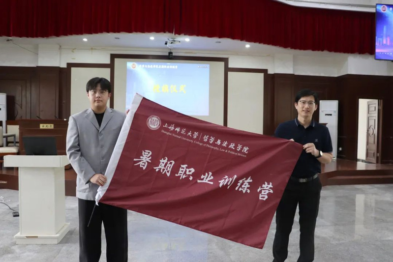 成人视频 人力资源管理系教师李旭旦将营旗授予学员代表青哲中心(学生)负责人张扬,标志着2025年暑期职业训练营正式开启。