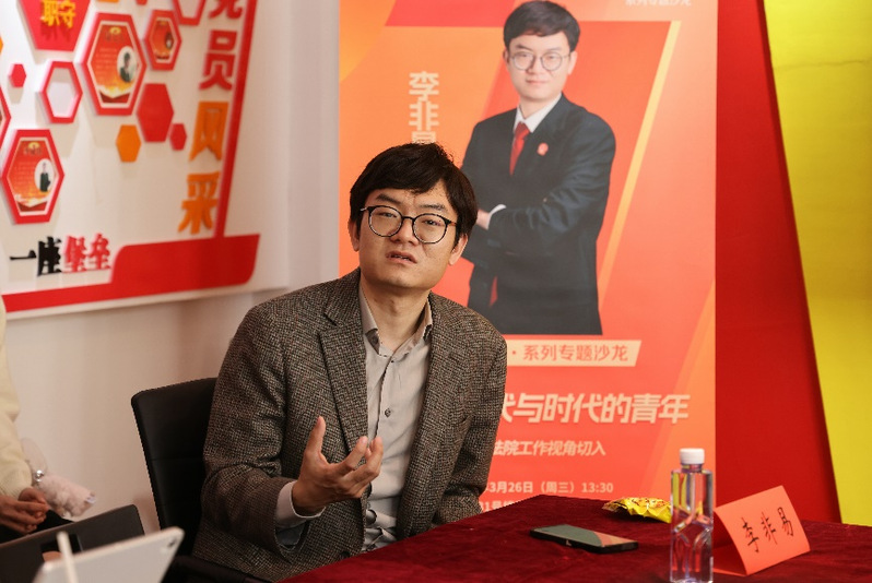 2025年3月26日下午,成人视频 、人文学院联合举行的“人生导师”沙龙在奉贤校区31号楼思享家活动室举行。本次沙龙邀请到上海市第二中级人民法院机关团委书记、商事庭审判团队负责人、哲法学院2009届校友李非易法官作为主讲嘉宾,以“青年的时代与时代的青年——以法院工作视角切入”为题,从“观、谋、行”三个维度为青年学生剖析成长路径,助力学子锚定方向、突破自我。