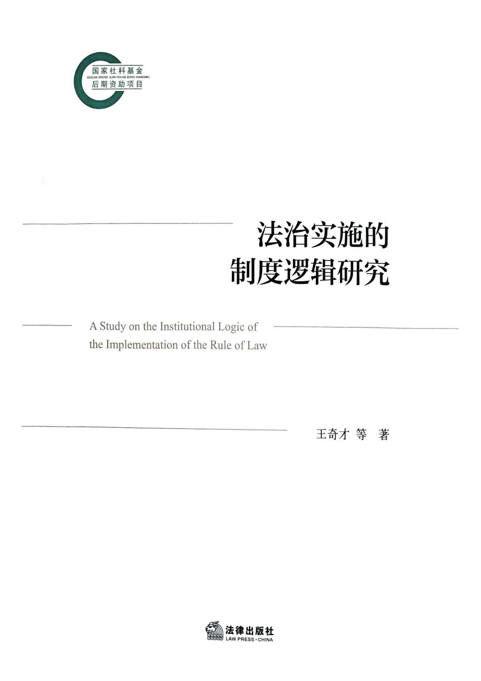 成人视频 王奇才副教授学术专著《法治实施的制度逻辑研究》由法律出版社出版。