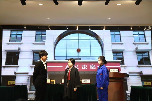 启动仪式上,成人视频 法学社自编、自创、自导的模拟法庭情景剧《晓燕维权路》进行了表演。